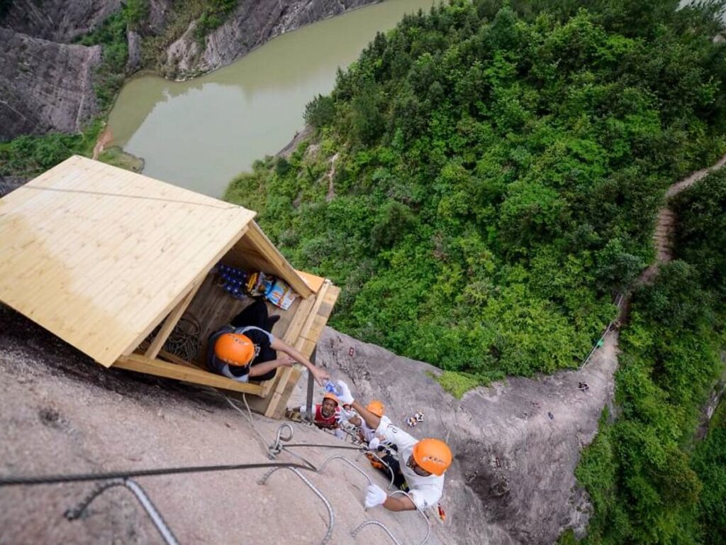 Магазин у парку Сіньючжай назвали «найнезручнішим у світі». Це не перебільшення, адже не кожен може до нього добратися. Це невелика дерев’яна будка, прикріплена до скелі. Його клієнти – любителі екстремального спорту, які піднімаються на круті поверхні на вершину.