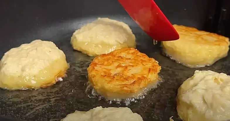 Беру сковорідку, у ній розігріваю олію. Вогонь роблю середній. Ложкою викладаю тісто, формую акуратні оладки. Смажу з одного боку до золотистої скоринки, потім перевертаю й доводжу до готовності з іншого. Викладаю на паперовий рушник, щоб забрати зайву олію.